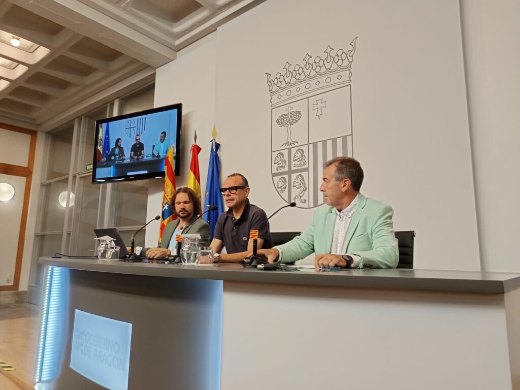 Zaragoza, jueves 18 de septiembre de 2025. El director general de Cultura del Gobierno de Aragón, Pedro Olloqui, el presidente de la Federación Aragonesa de Municipios, Comarcas y Provincias (FAMCP), Carmelo Pérez, y el presidente de la Agencia Nacional de Cultura Sostenible (ANCS), Carlos Castel, han presentado este jueves la plataforma digital RED-ES (Plataforma Red […]