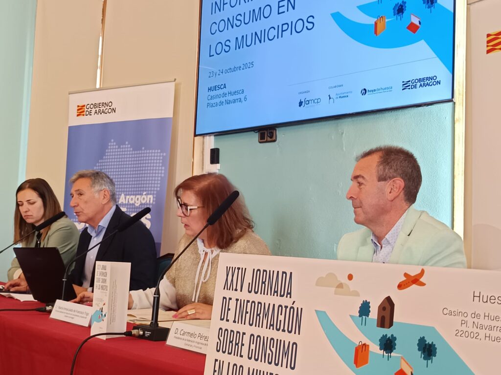 Huesca, jueves 23 de octubre de 2025. El Casino de Huesca ha acogido esta mañana la primera sesión de la XXIV edición de las Jornadas de Consumo organizadas por la Federación Aragonesa de Municipios, Comarcas y Provincias (FAMCP), Una jornada inaugurada por el presidente de la FAMCP, Carmelo Pérez, la directora general de Protección de […]