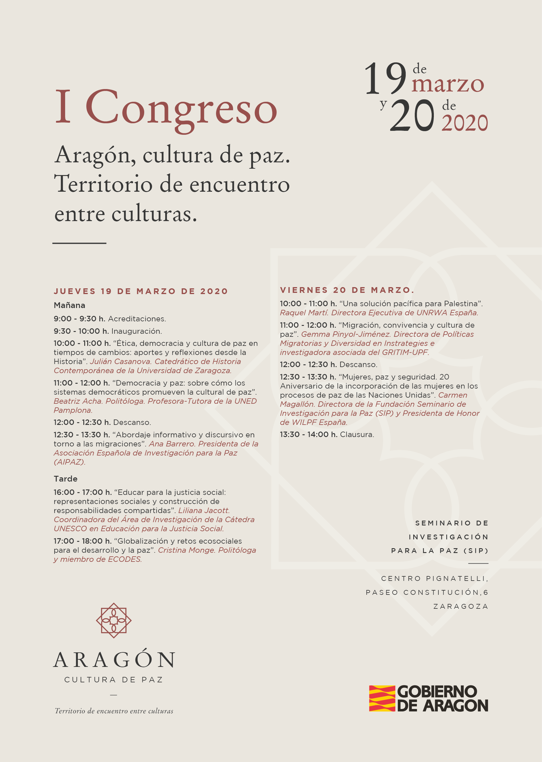 Jueves 19 y viernes 20 de marzo, en el Centro Pignatelli, situado en Paseo Constitución, 6. Zaragoza.