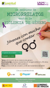 El Instituto Aragonés de la Juventud (IAJ), en colaboración con el Instituto Aragonés de la Mujer (IAM) y la Fundación Piquer, convoca una edición más del ‘Concurso de Microrrelatos contra la Violencia de Género: Jóvenes con mucho que contar’.